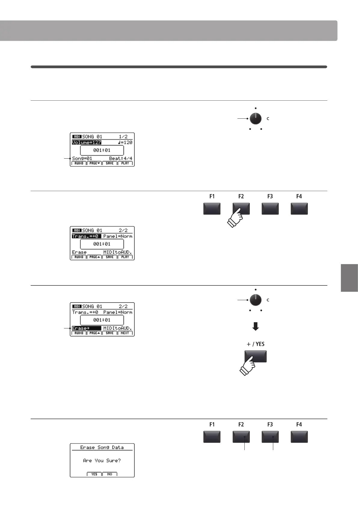 Press the F2 button (YES) to conrm the Erase Song operation,