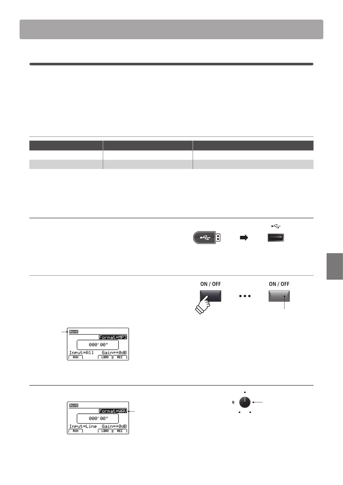 * USB devices should be formatted to use the ‘FAT’ or ‘FAT32’ lesystems.