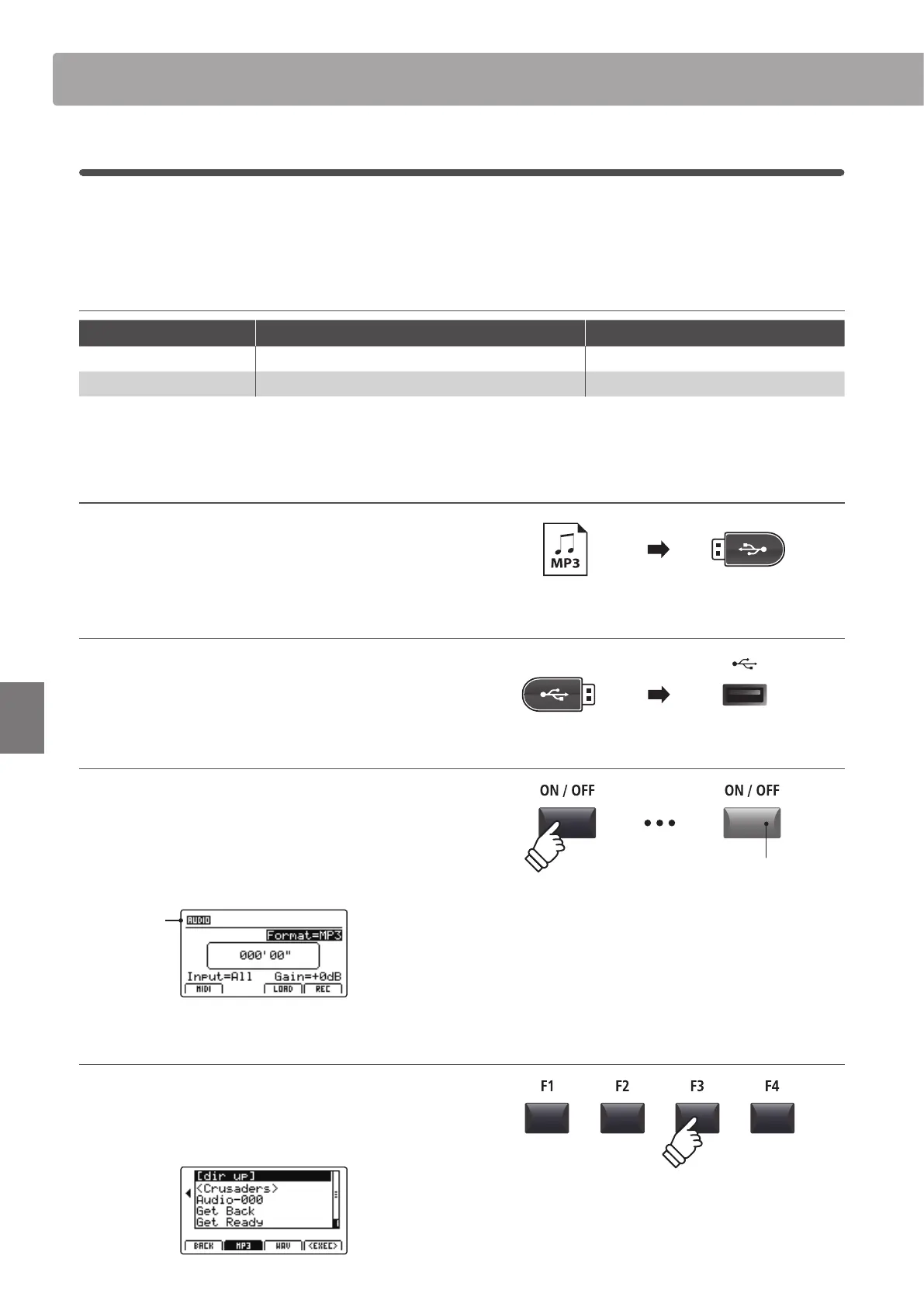 * USB devices should be formatted to use the ‘FAT’ or ‘FAT32’ lesystems.
