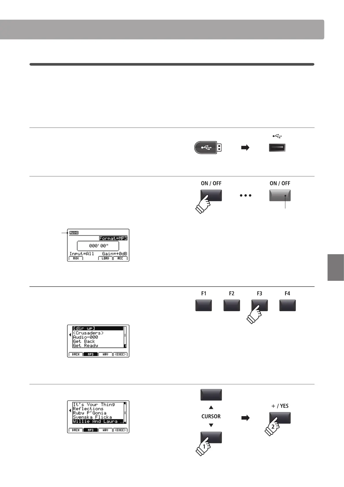 * If the MIDI recorder screen is shown, press the F1 function button (AUDIO)
