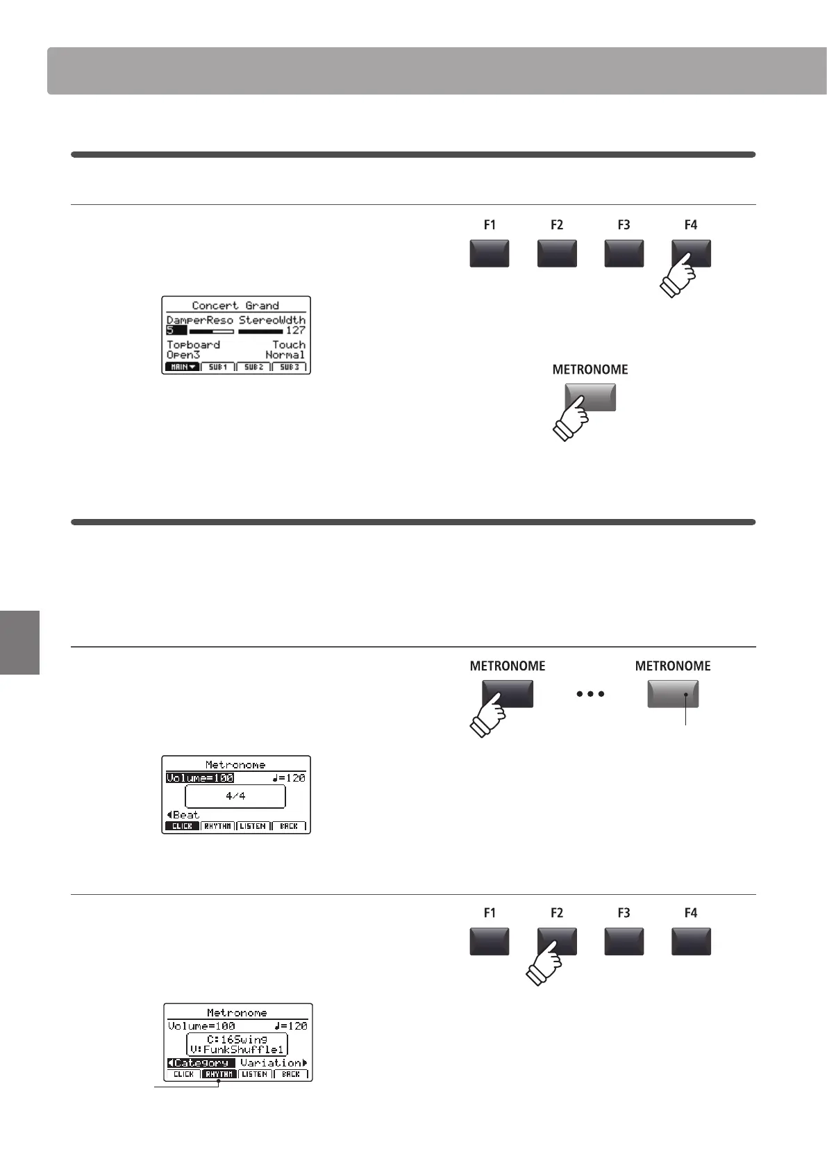 In Rhythm mode, the metronome function provides a more musically inspiring drum track. There are 100 dierent