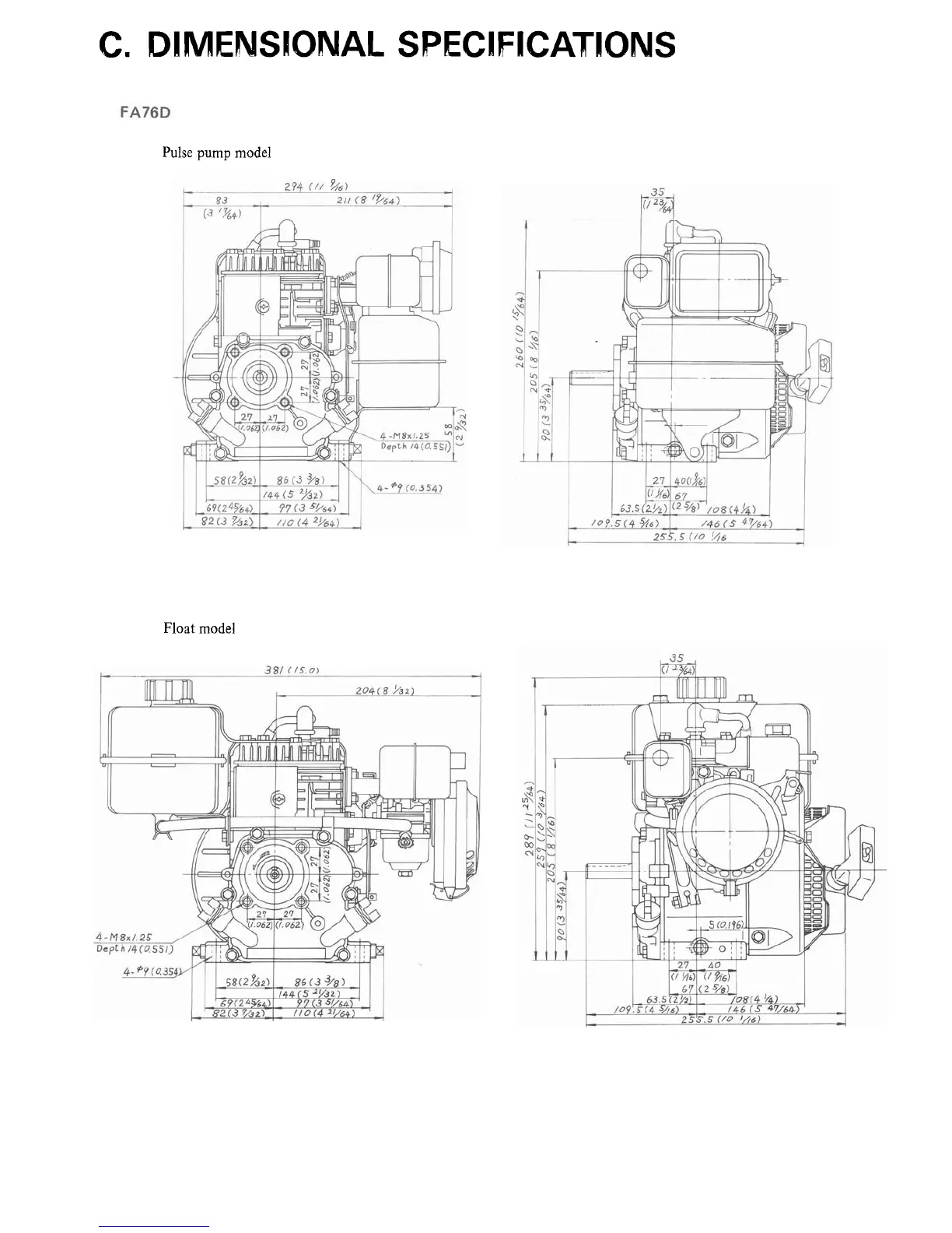 Kawasaki FA76 - Dimensional Specifications; FA76 D Dimensional Specifications
