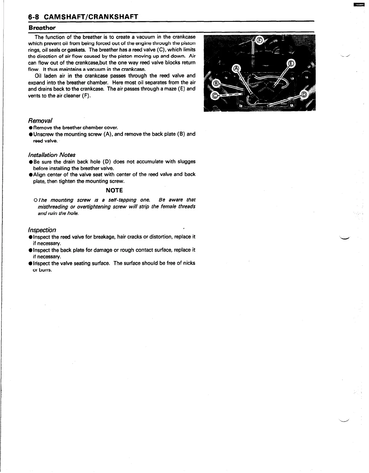 rings, oil seals or gaskets. The breather has a reed valve (C), which limits