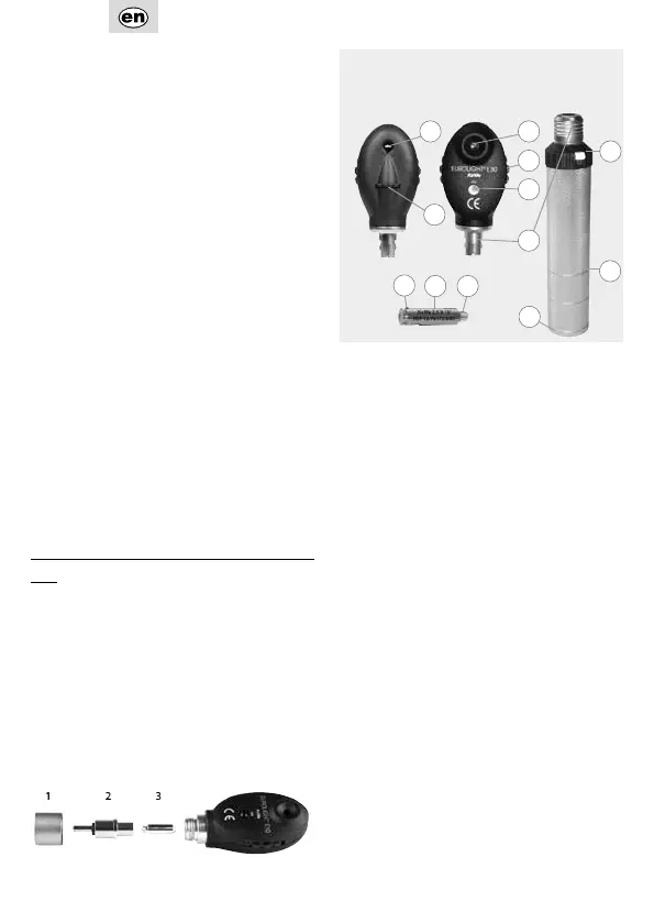 thalmoscope head from the handle. Unscrew the un-