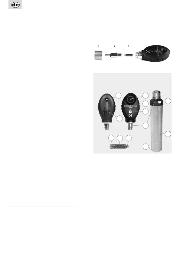 Ophthalmoskop-Kopf vom Griff ab. Schrauben Sie den
