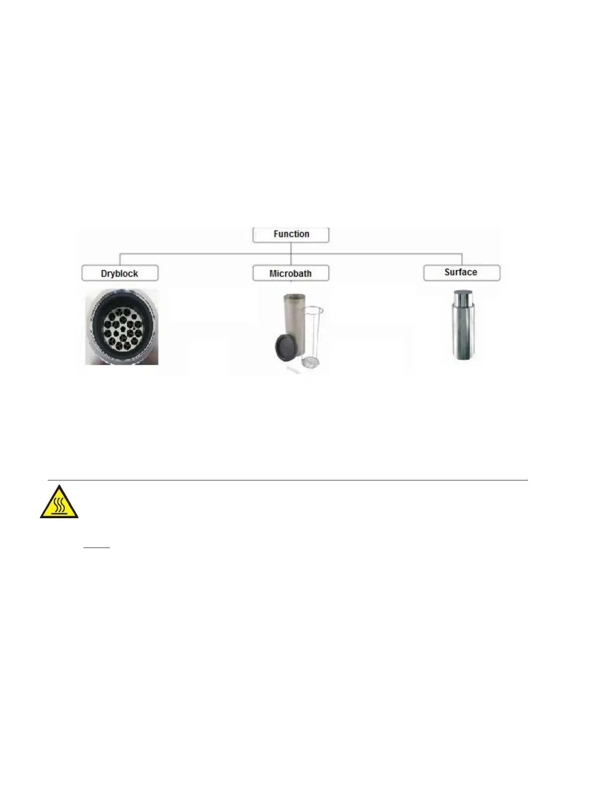 Never touch the metal block, the tank, the adapter sleeve or the test sensors at temperatures above