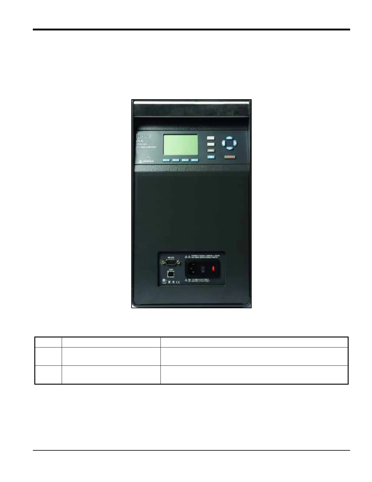 Table 4 identifies and describes the panels on the front of the Calibrator.