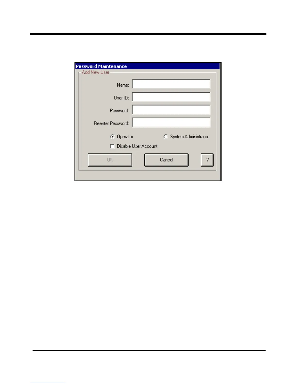 Figure 11: Password Maintenance Add New User Screen