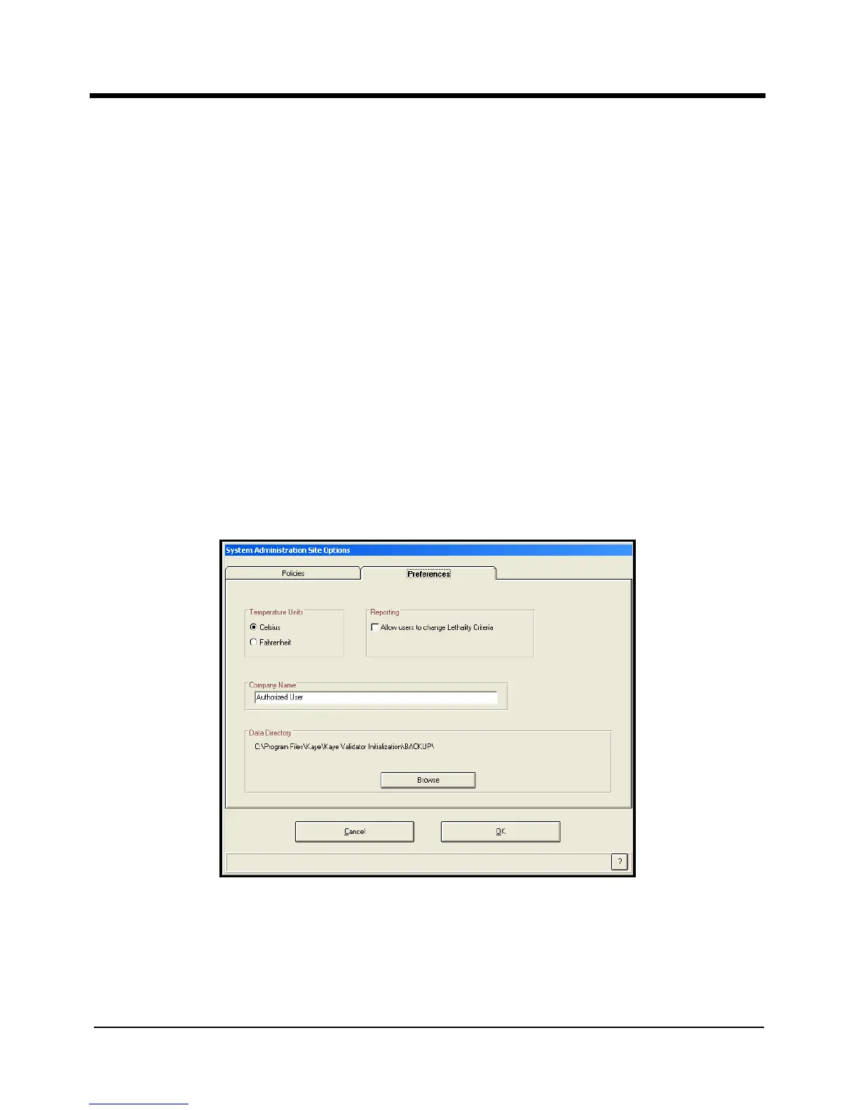 while running the Kaye RF ValProbe software. To access the site options from the