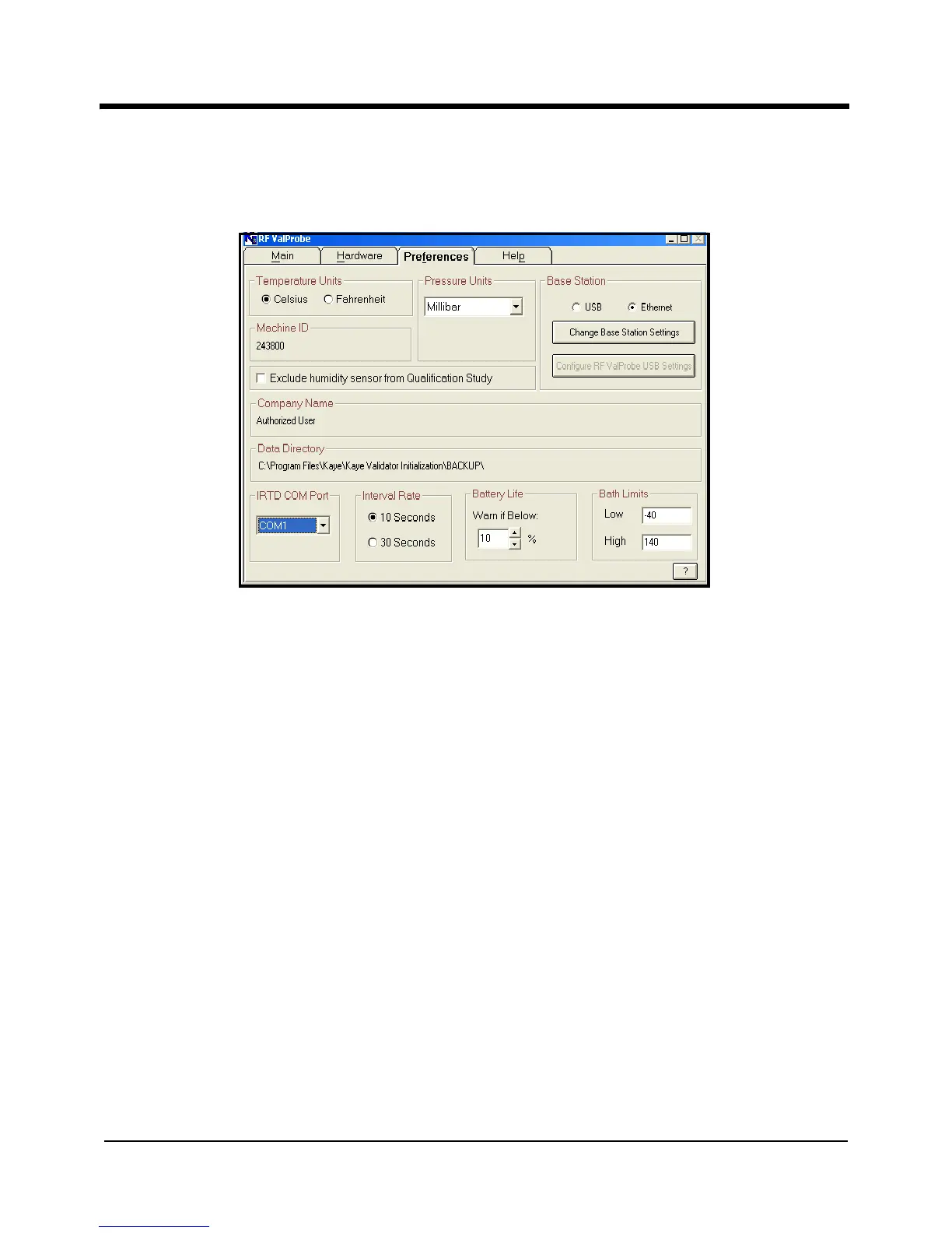 Note: This selection applies to the entire RF ValProbe --both the Base Station and