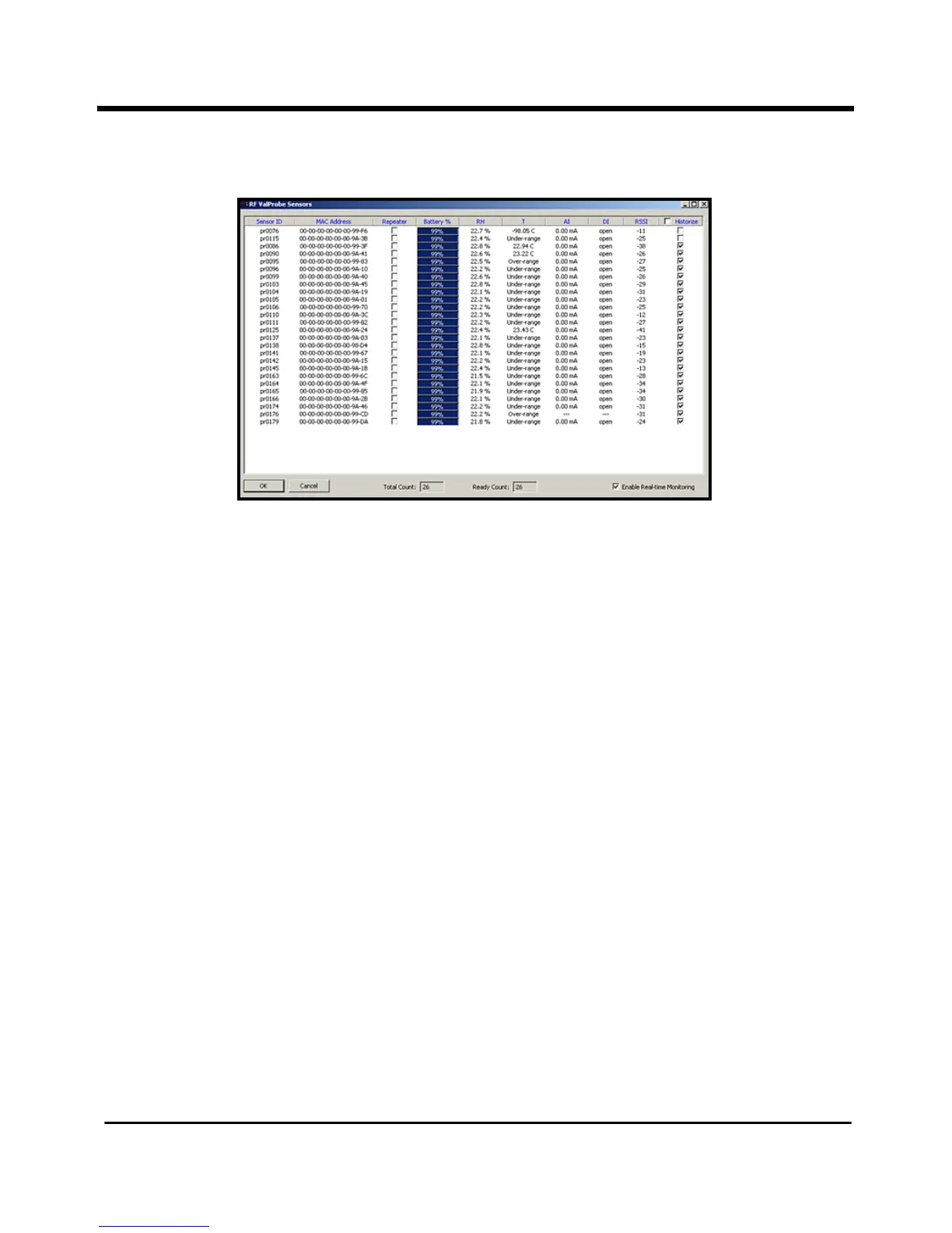 Figure 33: Sensors Window with Monitored Sensors
