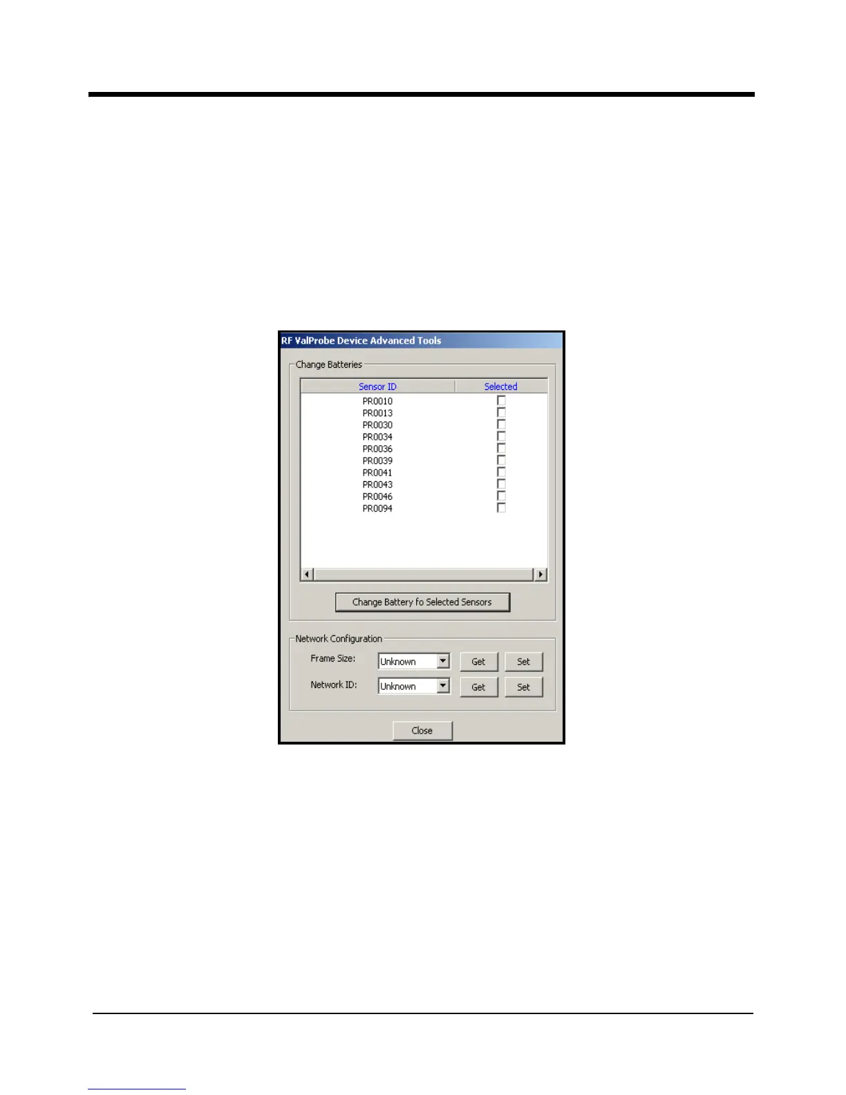 selecting sensors, click on the “Change Battery for Selected Sensors” button. The