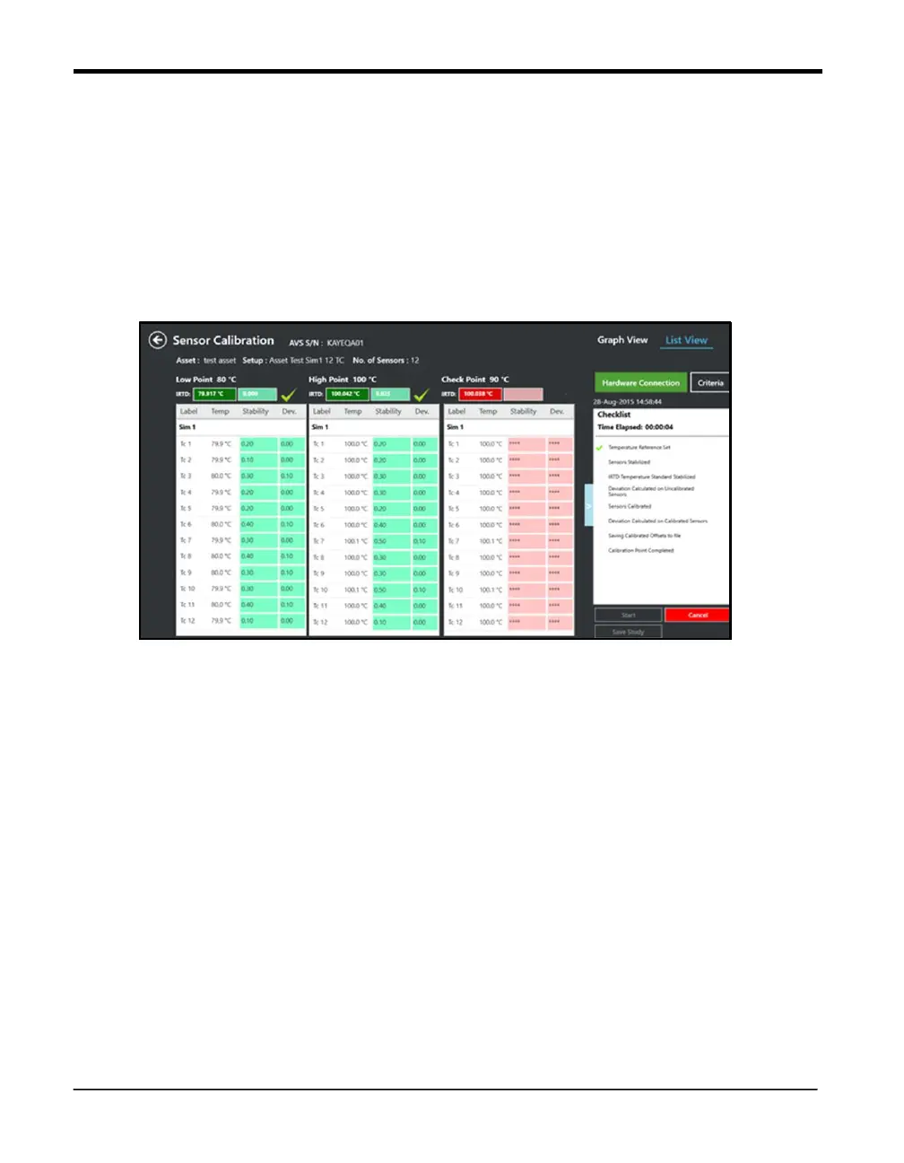 If the Validator AVS is in Calibration or Verification status, the live screen displays groups as