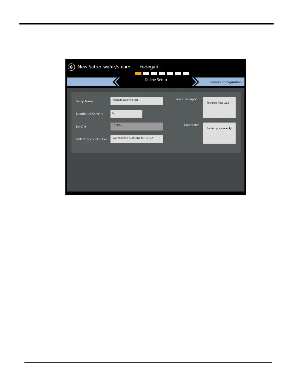 Note: The Setup name, Study type, and Number of sensors fields are mandatory.