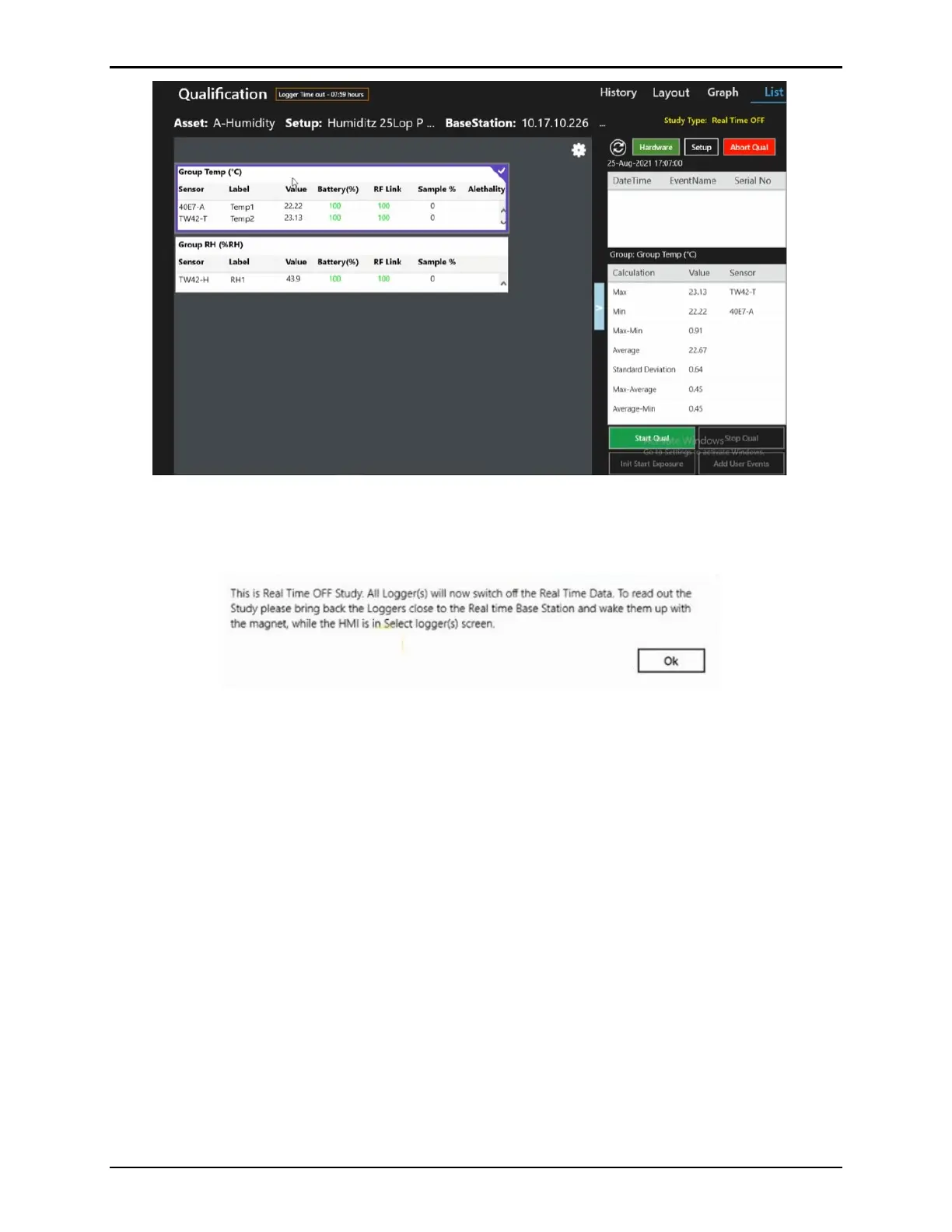 Figure 118: Real Time Off Qualification Screen