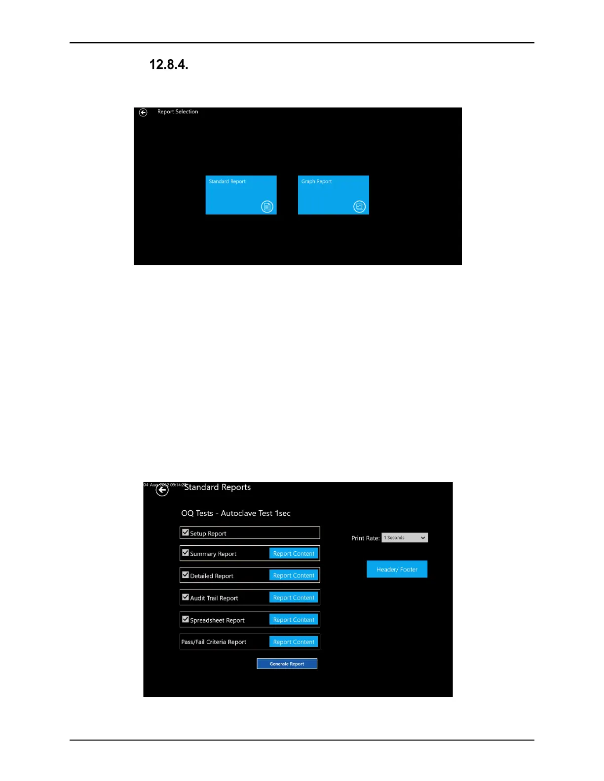 Figure 183: Standard Report Selection Screen