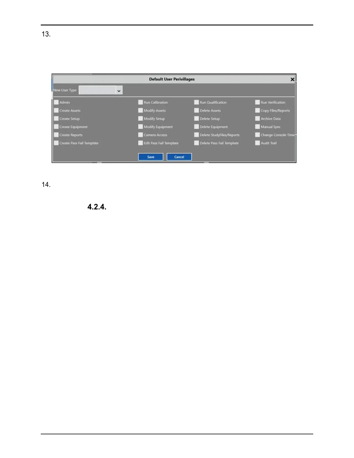 Select which privileges to add or remove for the new User type by selecting or deselecting