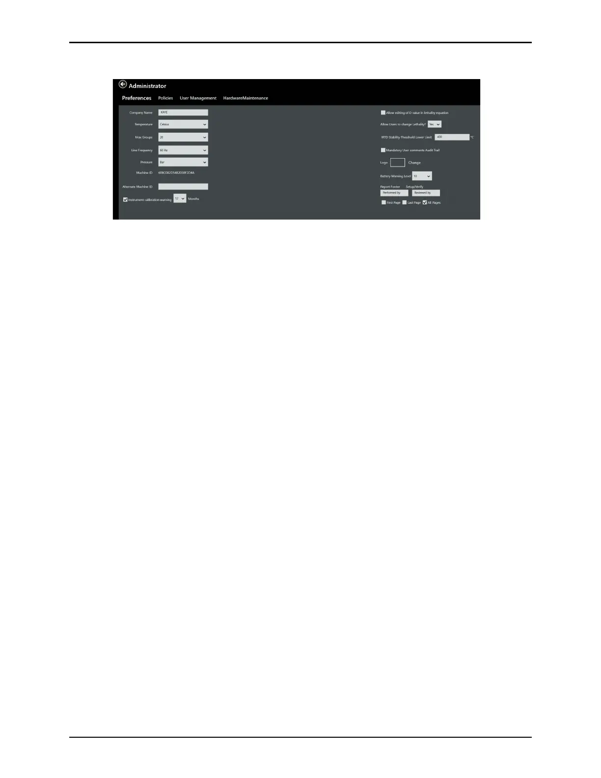 Figure 65: Preferences Tab in Administrator Menu