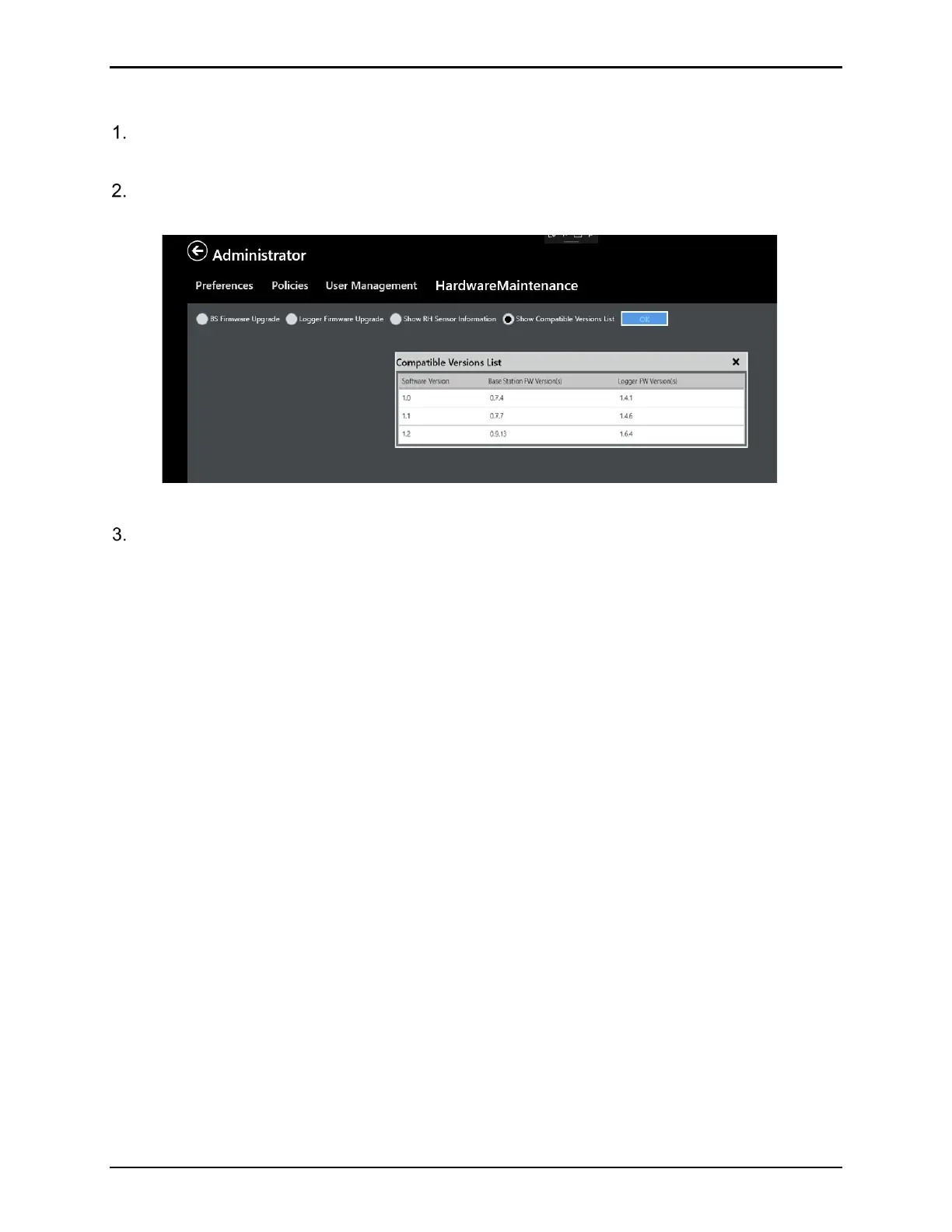 From the Admin / Hardware Maintenance screen, select Show Compatible Versions List