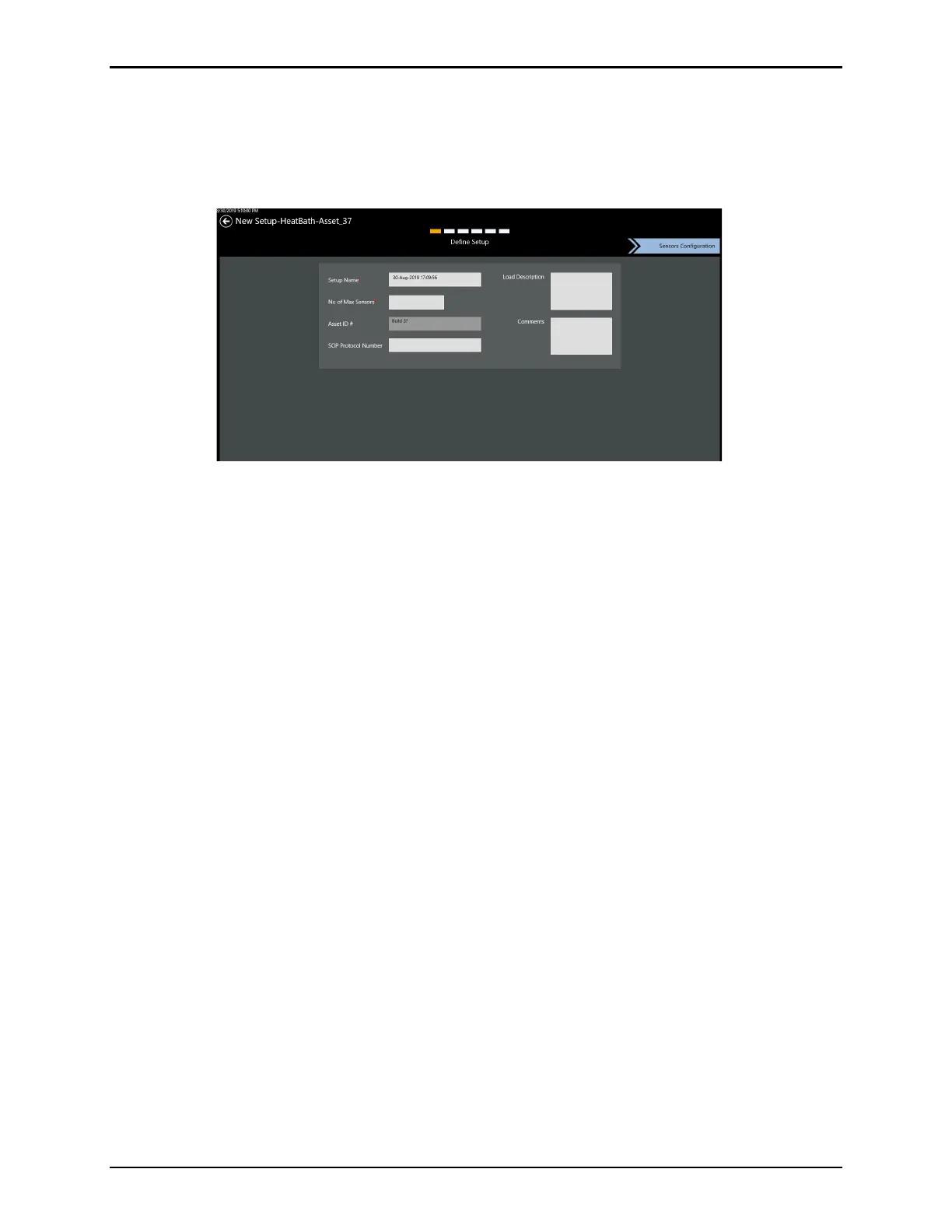 When all asset data is entered, select Sensors Configuration to continue.