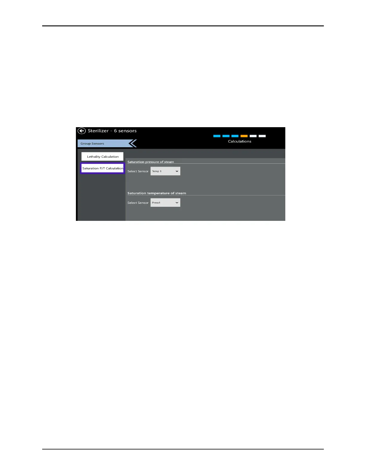 The Saturation Pressure of Steam is calculated based on a selected temperature sensor. It