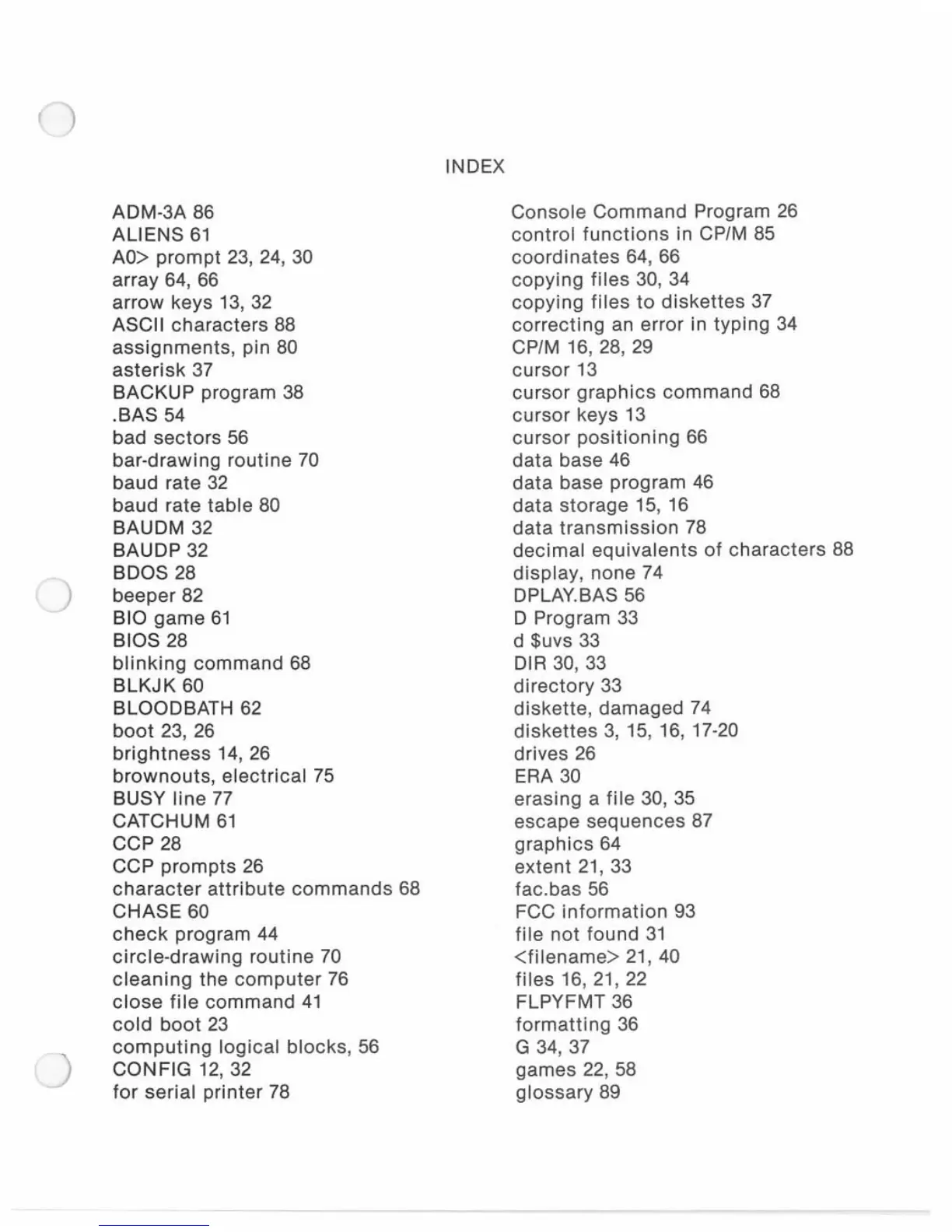 Kaypro 10 - INDEX