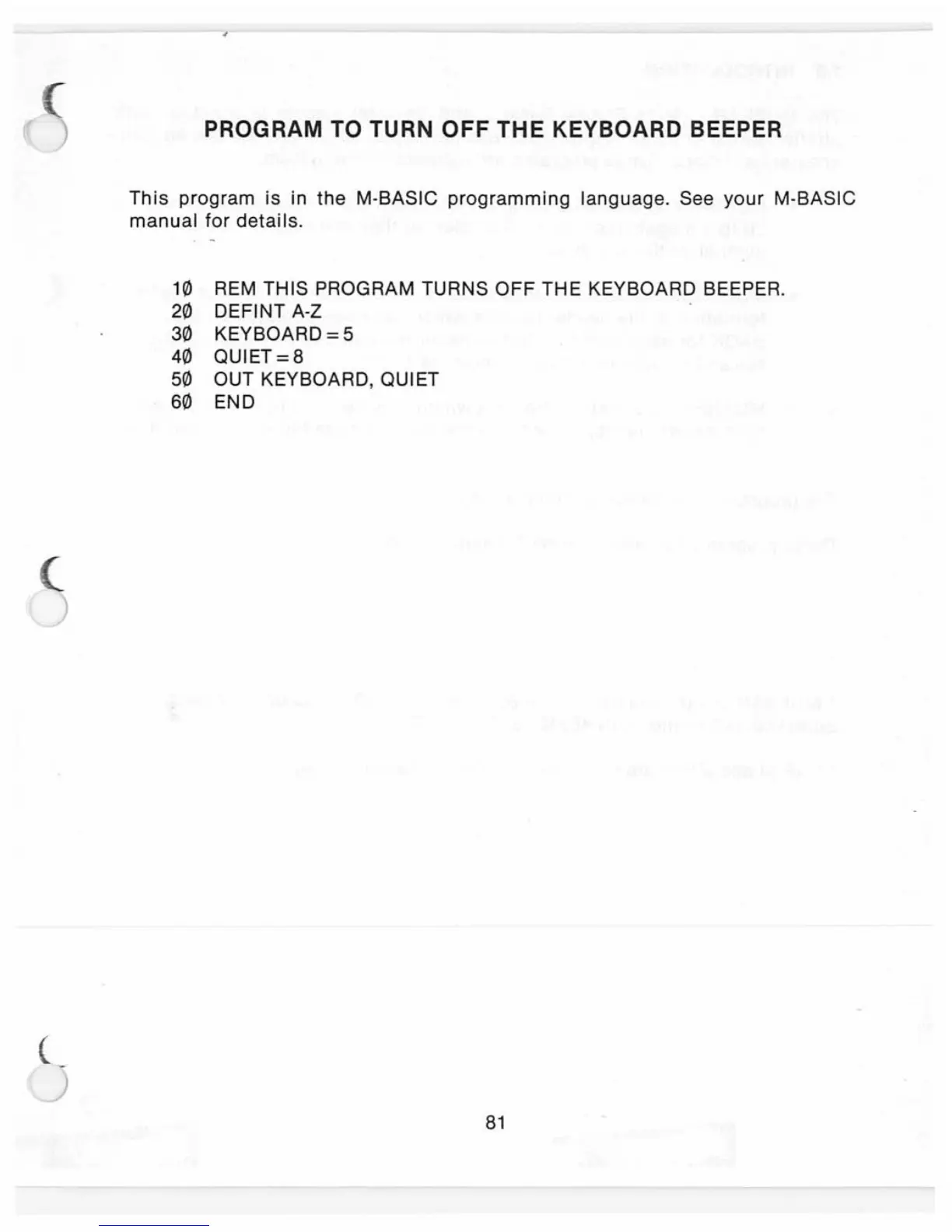 THIS PROGRAM TURNS OFF THE KEYBOARD BEEPER.