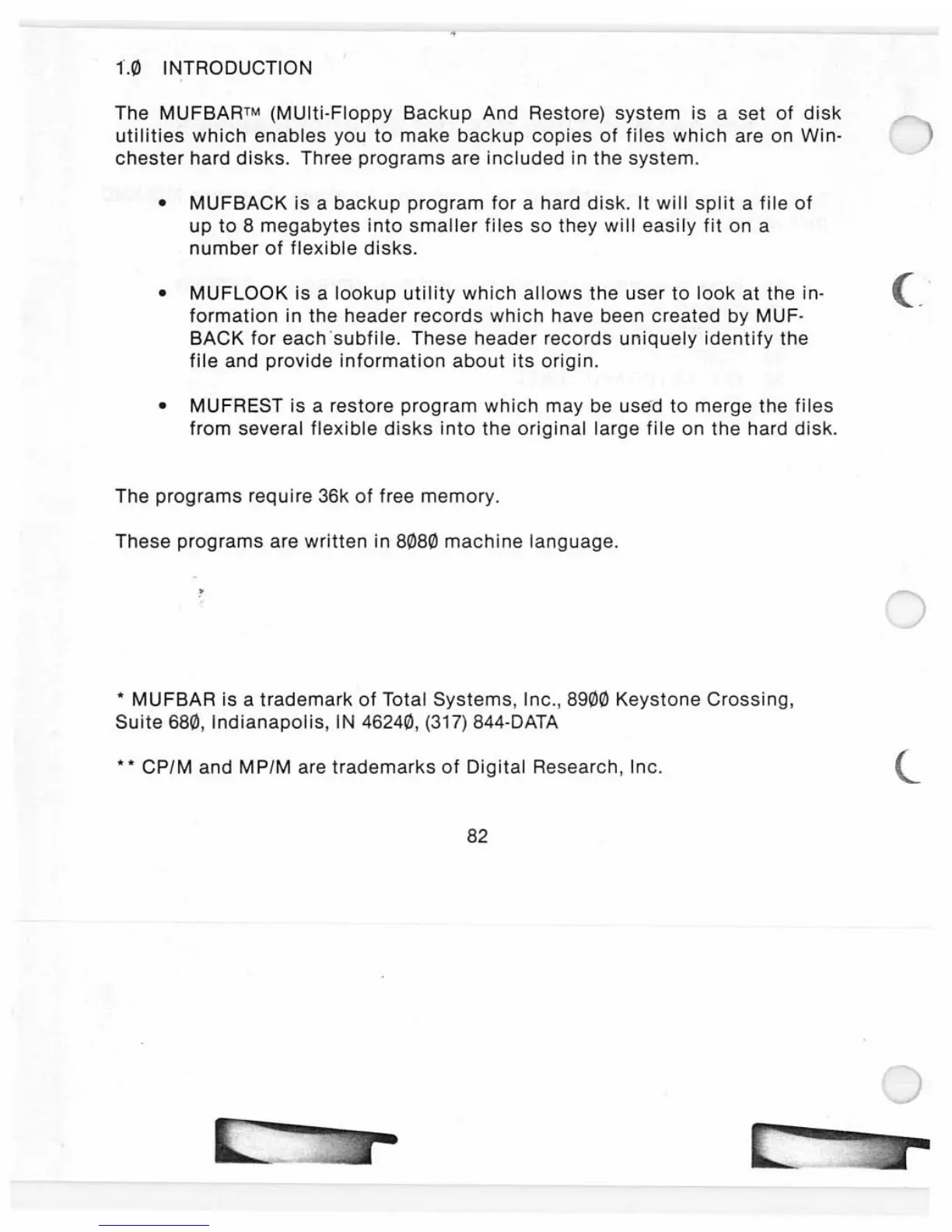 Kaypro 10 - APPENDIX A: MUFBAR BACKUP AND RESTORE SYSTEM; Introduction to MUFBAR