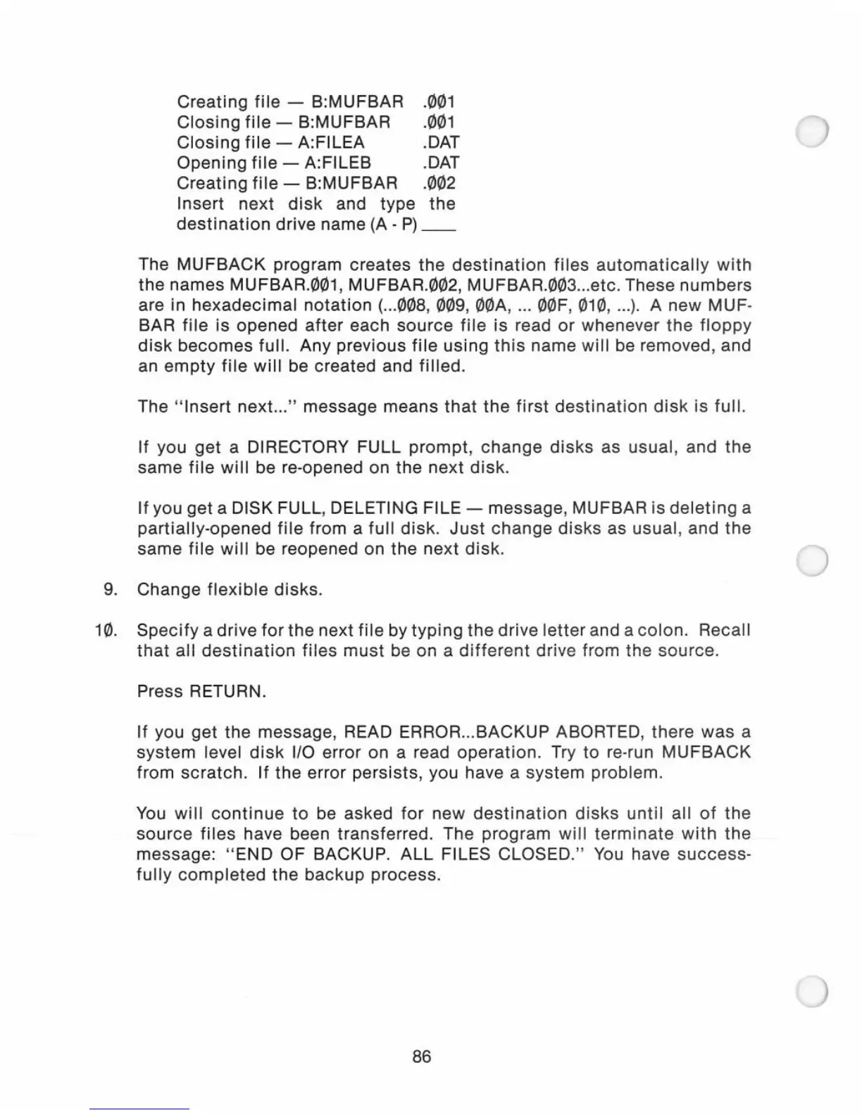 you get a DISK FULL, DELETING FILE - message, MUFBAR is