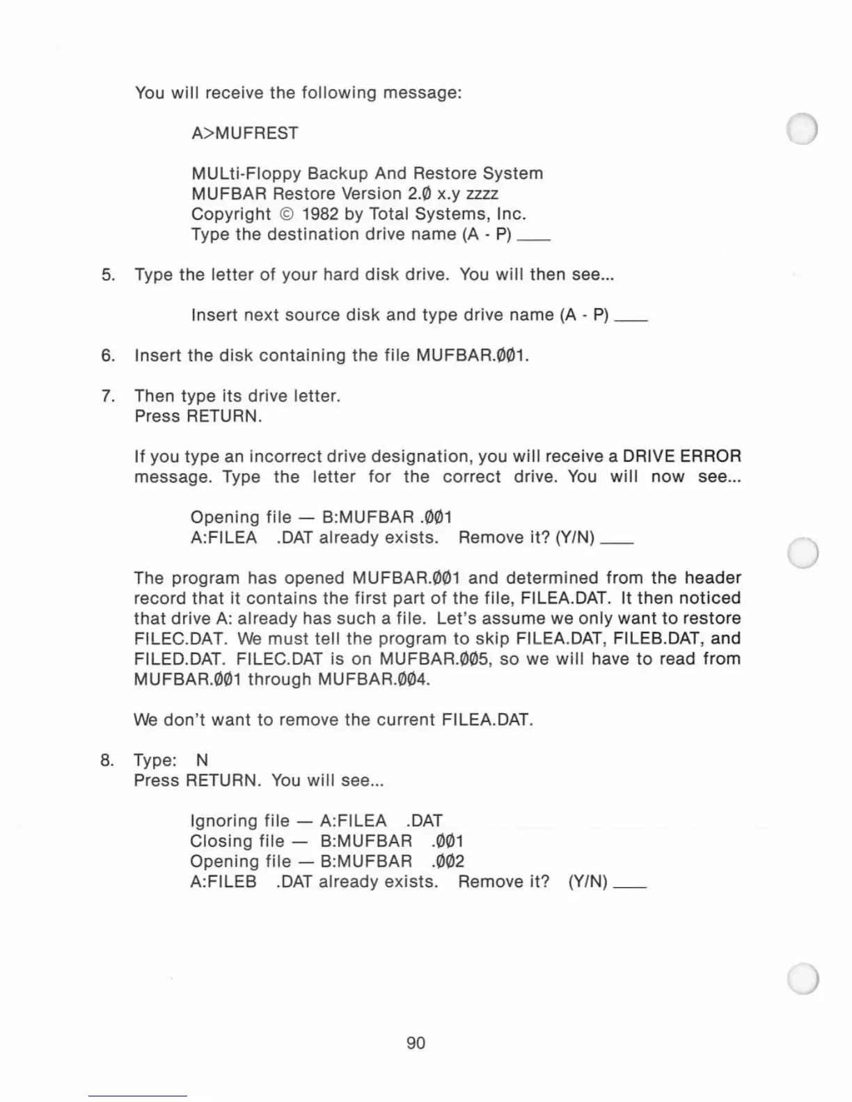 MUFBAR Restore Version 2.0 x.y zzzz