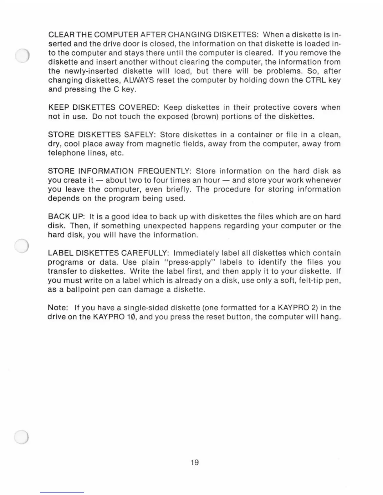 STORE DISKETTES SAFELY: Store