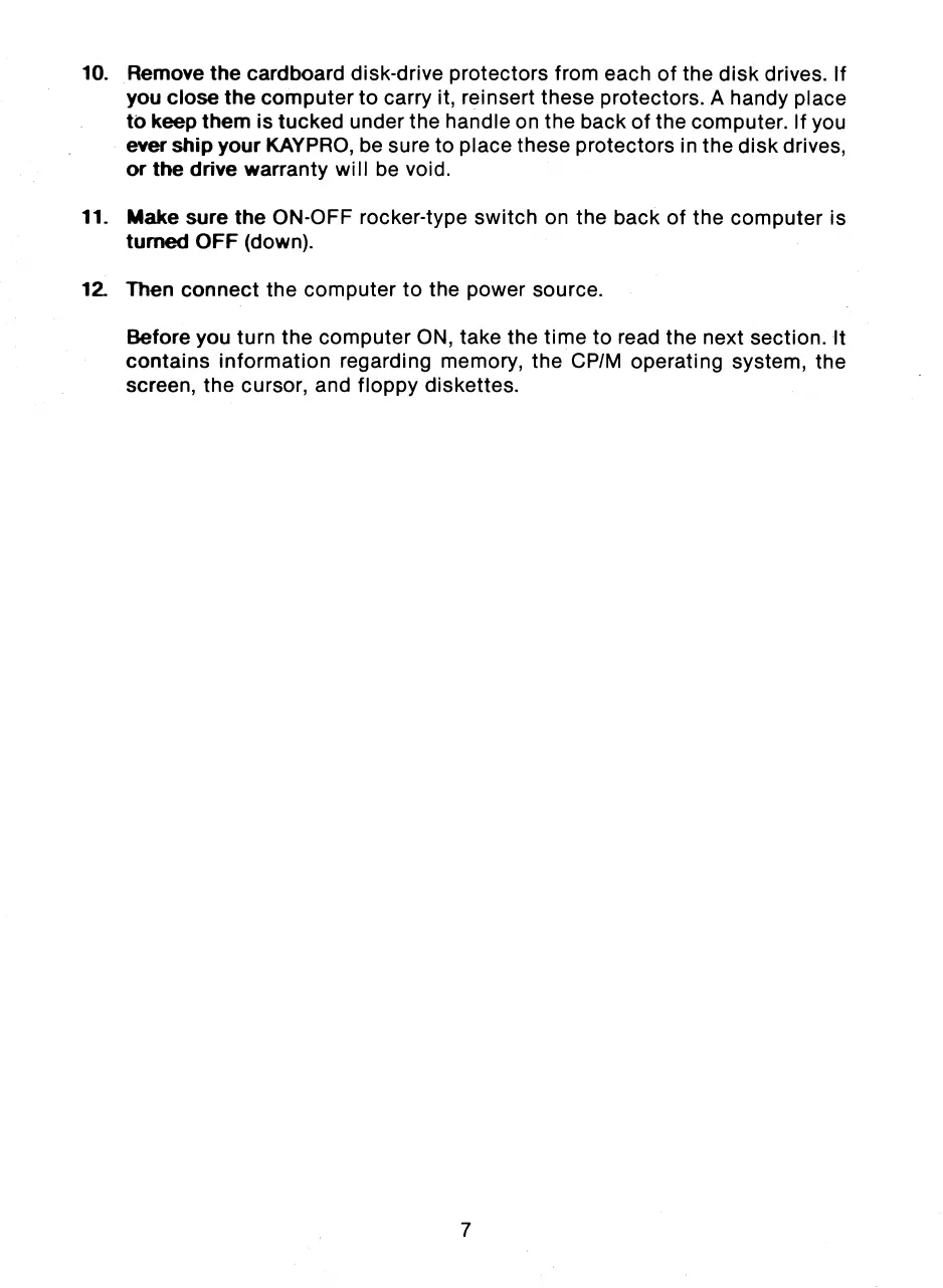 ever ship your KAYPRO, be sure to place these protectors in the disk drives,