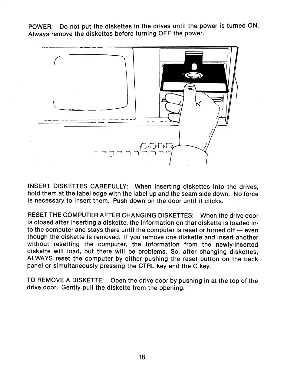 RESET THE COMPUTER AFTER CHANGING DISKETTES: When the drive door