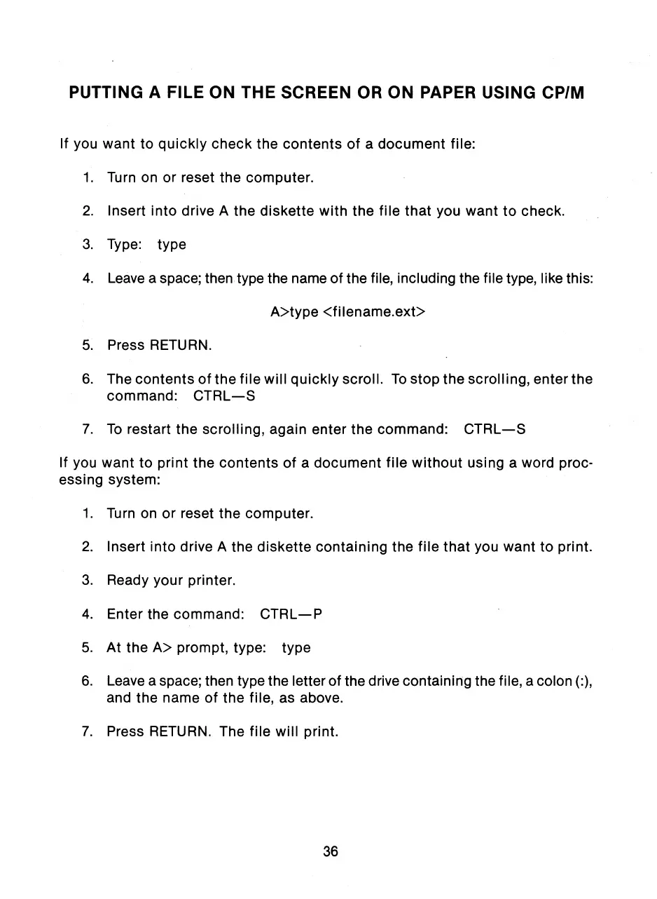 PUTTING A FILE ON THE SCREEN OR ON PAPER USING CP/M