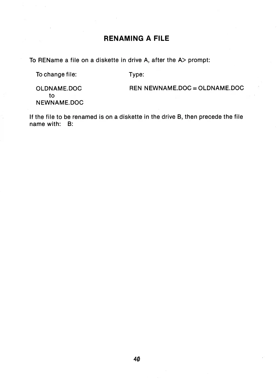 If the file to be renamed is on a diskette in the drive B, then precede the file