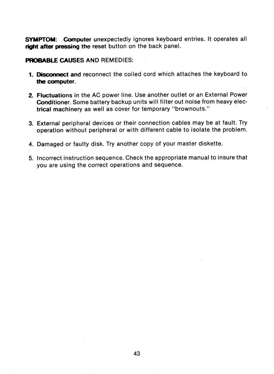 SYMPTOM: Computer unexpectedly ignores keyboard entries. It operates all