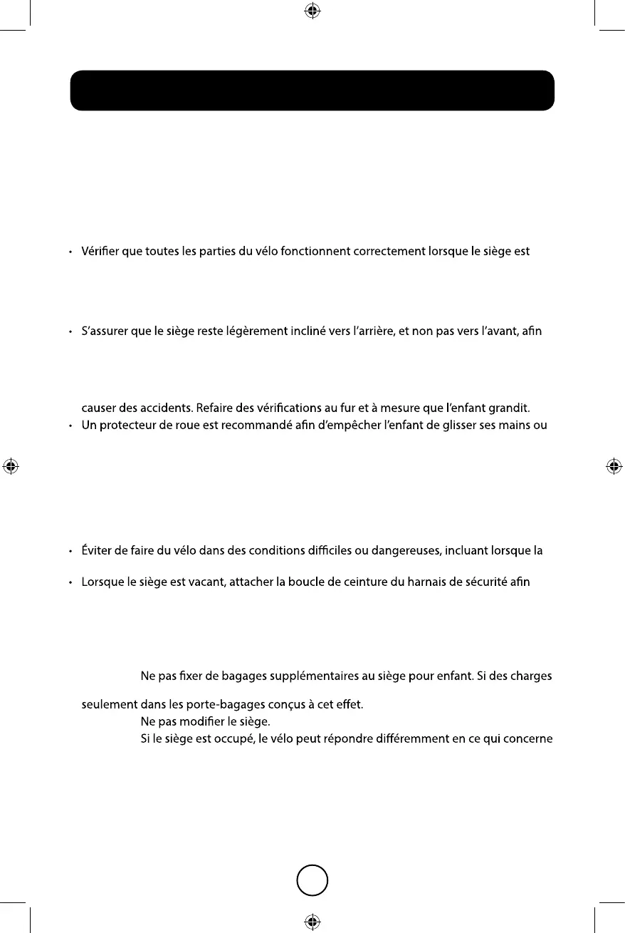 • Ne pas installer ce siège pour enfant sur un vélo de course (guidon surbaissé).