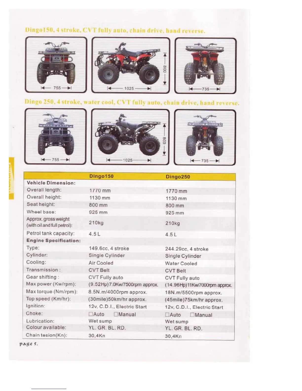 Kazuma Dingo150 - Model Information and Component Procedures; Vehicle Dimensions and Engine Specifications
