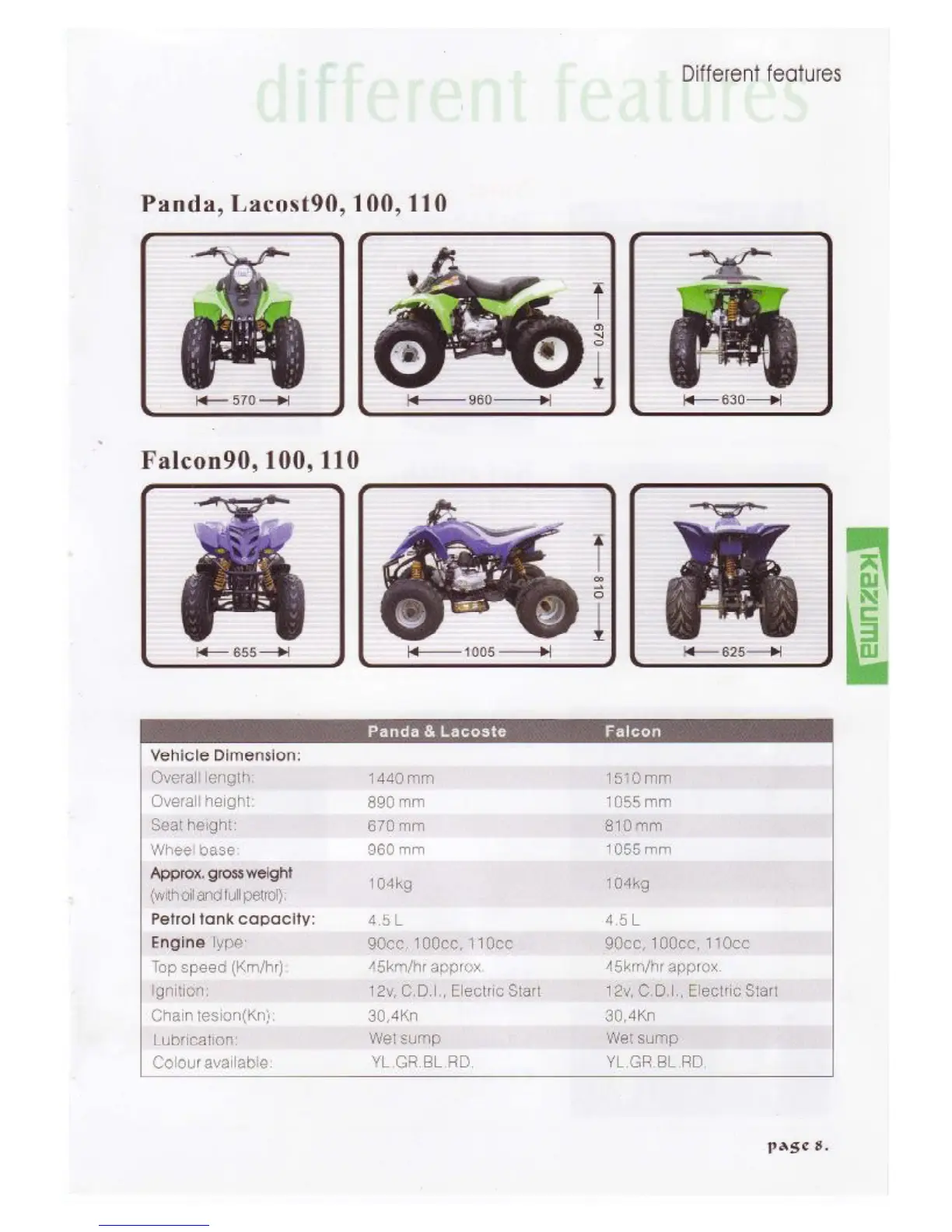 Kazuma Falcon - Vehicle Specifications and Dimensions