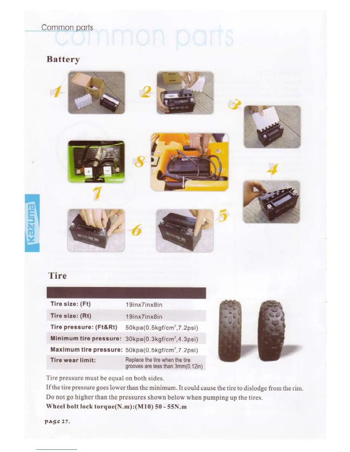 Kazuma Falcon - Battery; Tyres