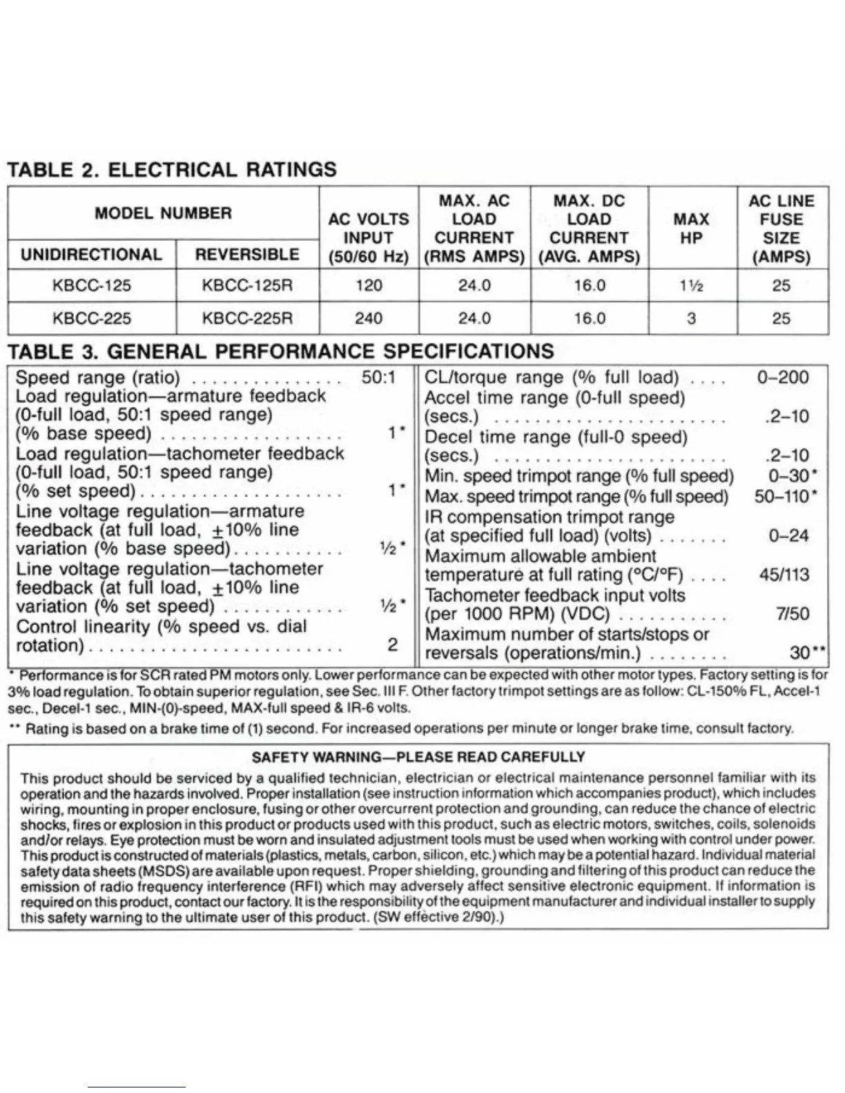 KB Electronics KBCC-125R - Electrical Ratings; General Performance Specifications