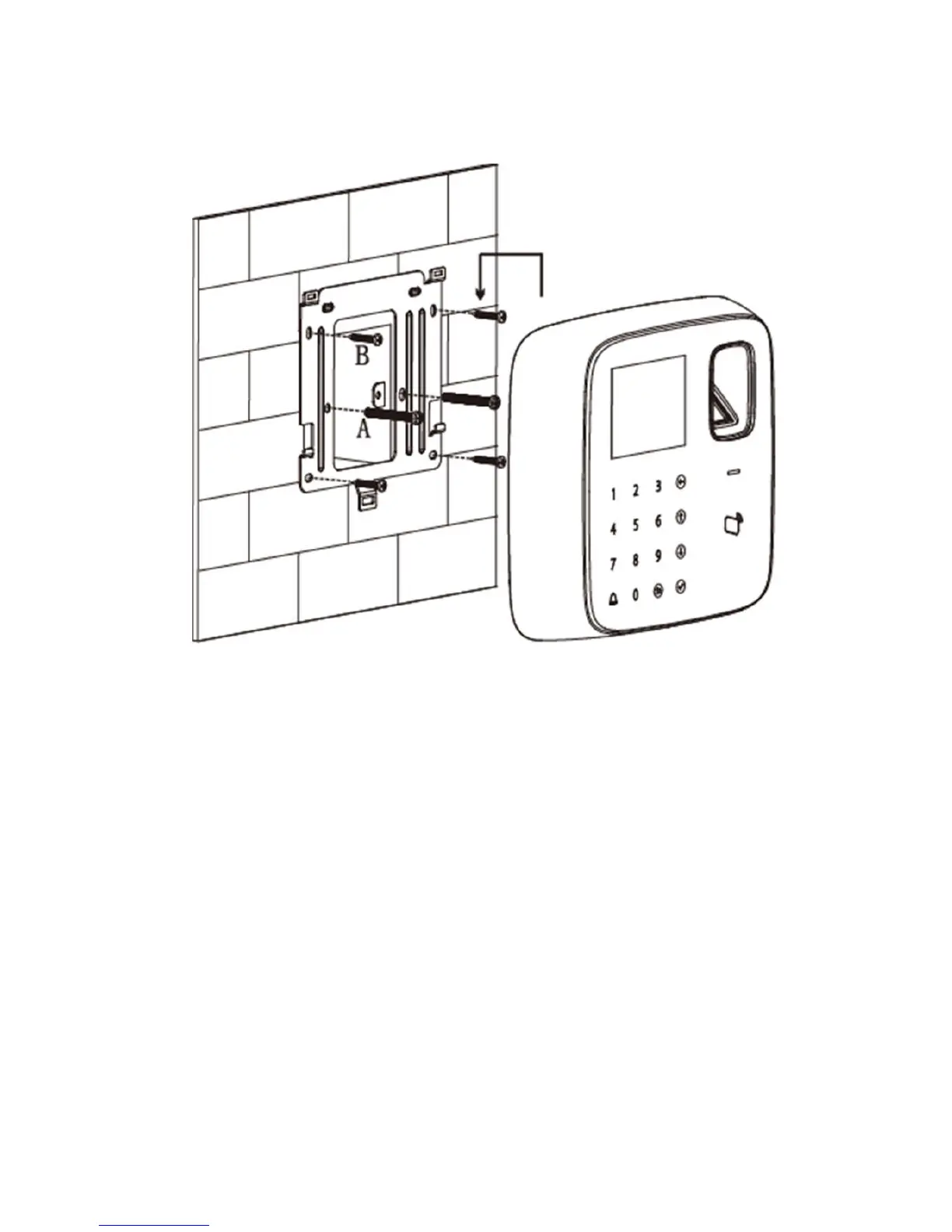 wall (if no 86 box or you cannot fix it well, then use screw B to fix the bracket on wall,