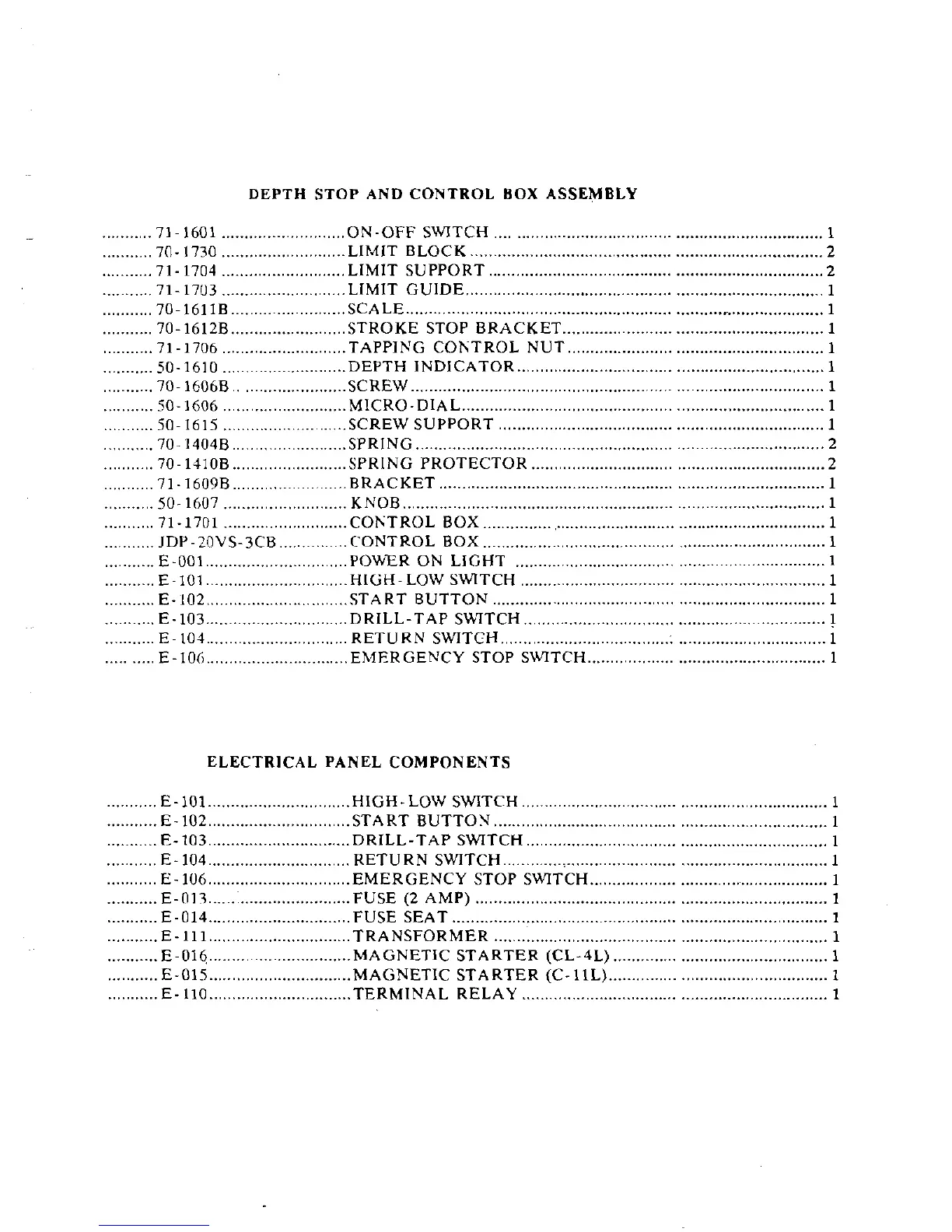 DEPTH STOP AND CONTROL BOX ASSEMBLY