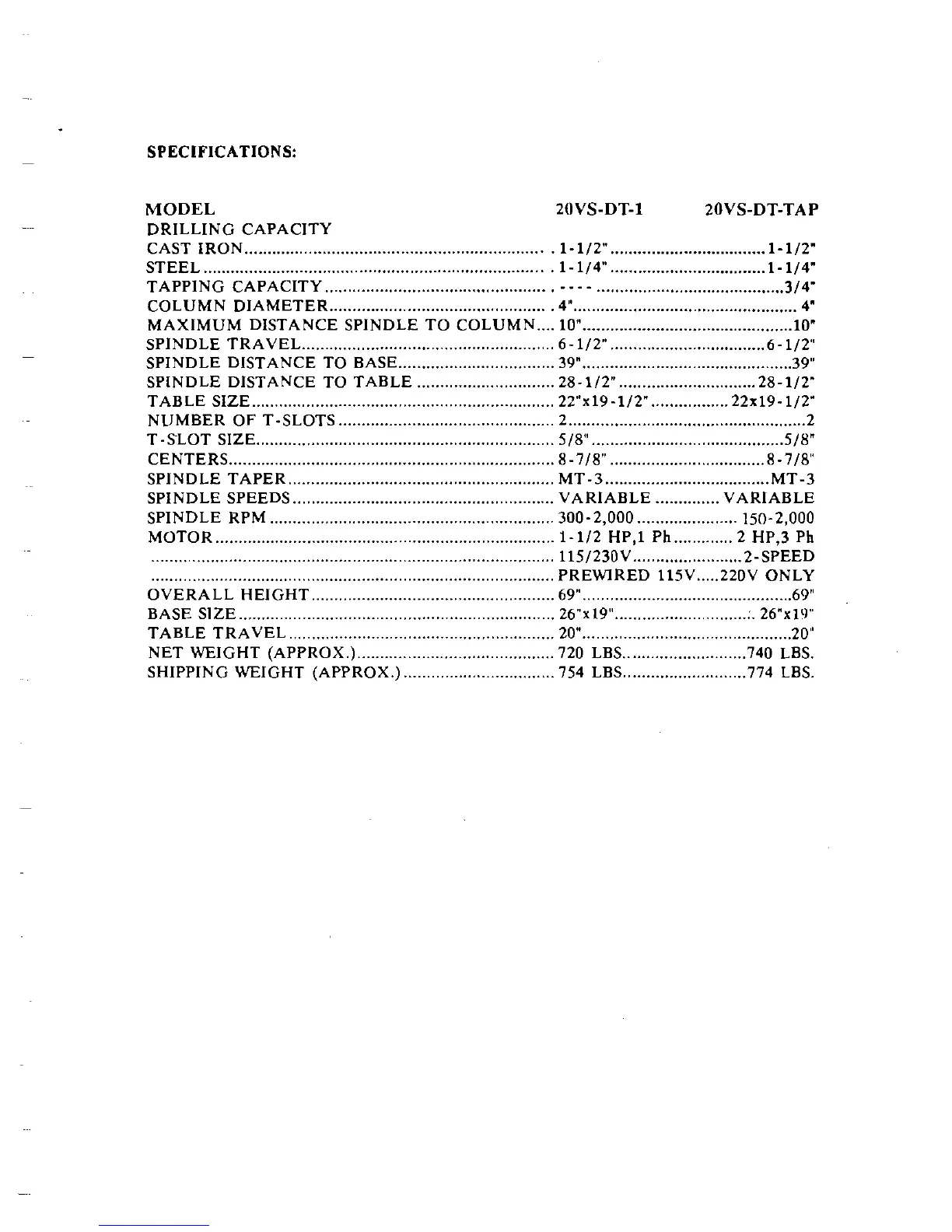 SPINDLE DISTANCE TO TABLE