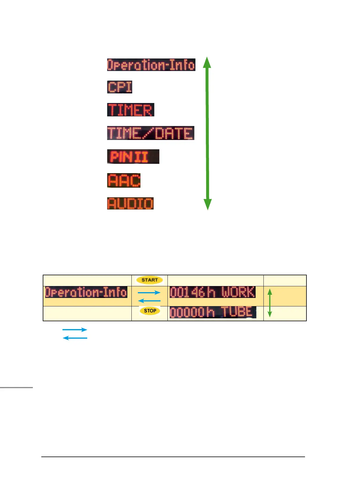 In this menu, the service hours of the sunbed (WORK) and the