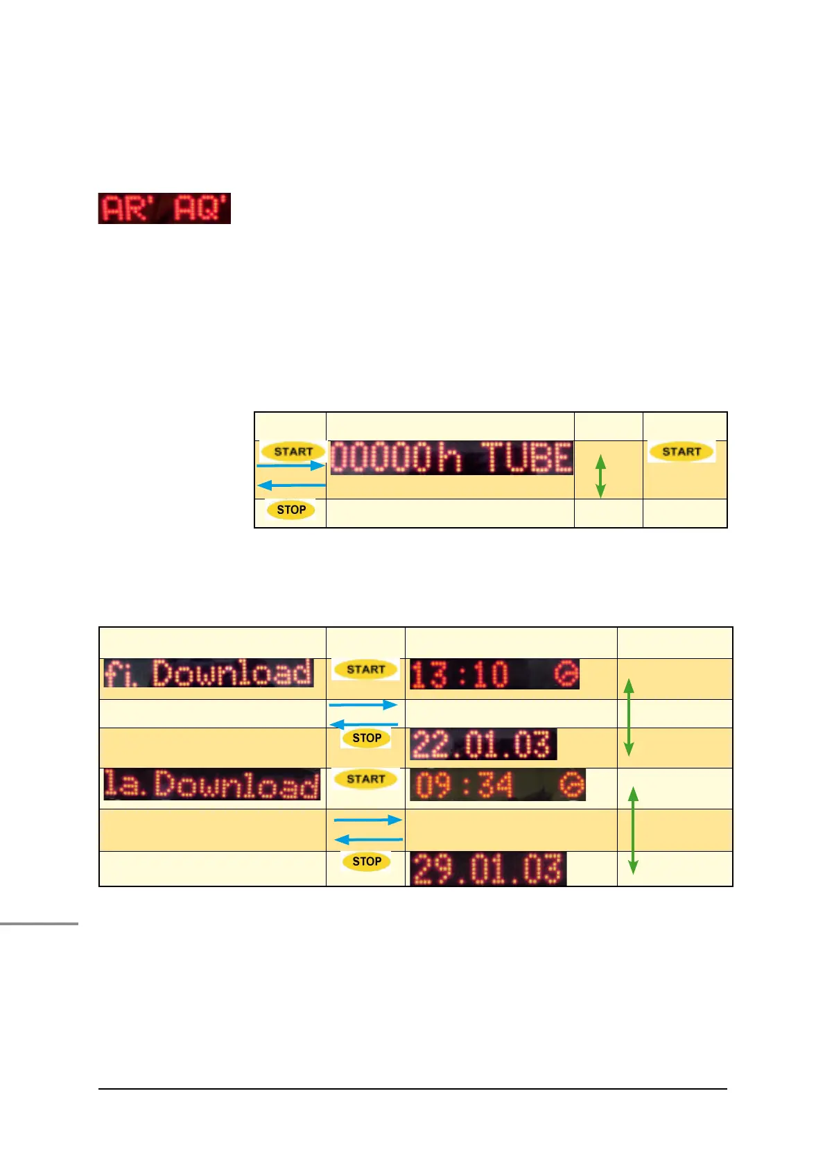Tube hours In this menu, you can set the service hours of the tubes in steps
