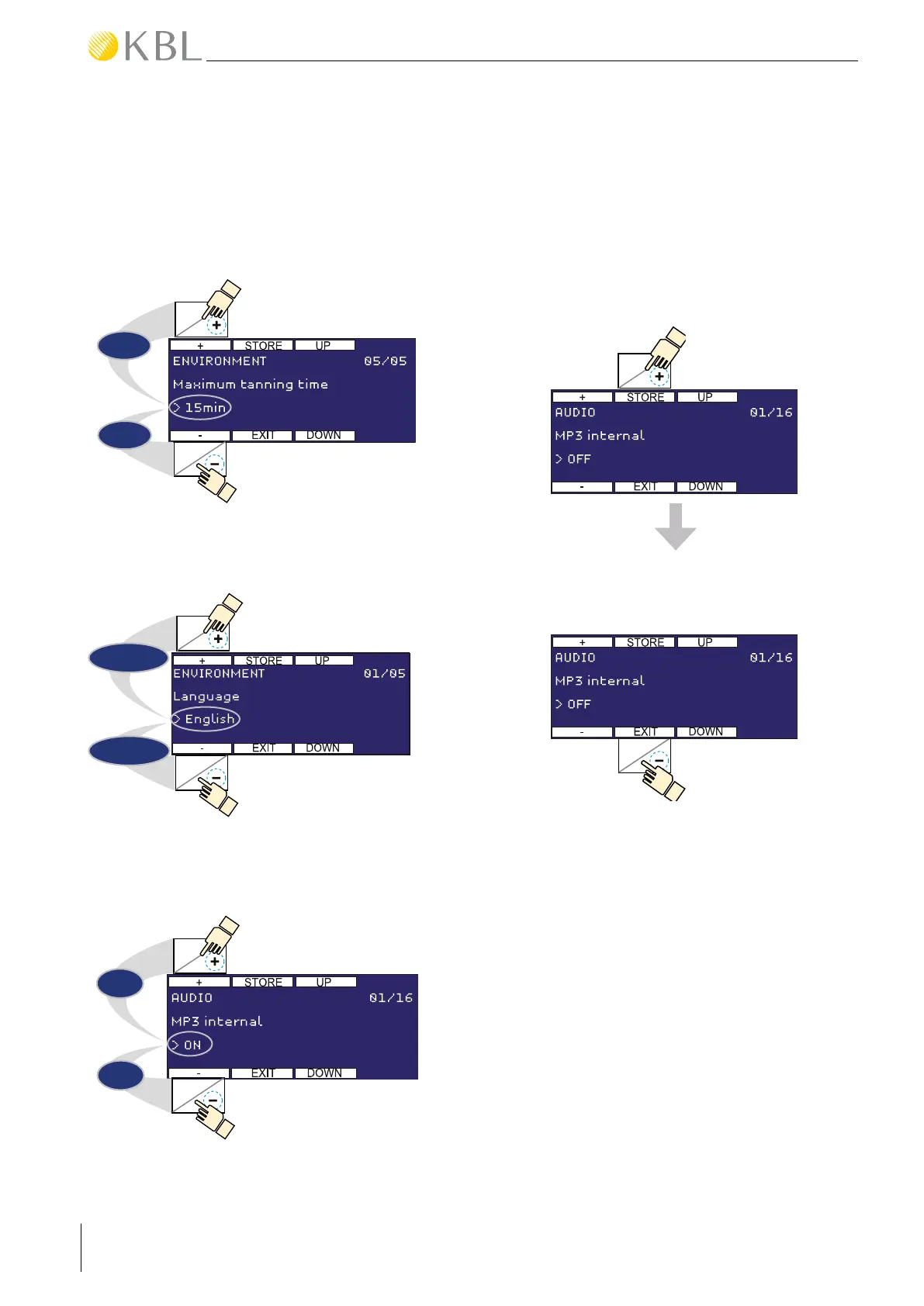 • Save your settings by pressing the button 3