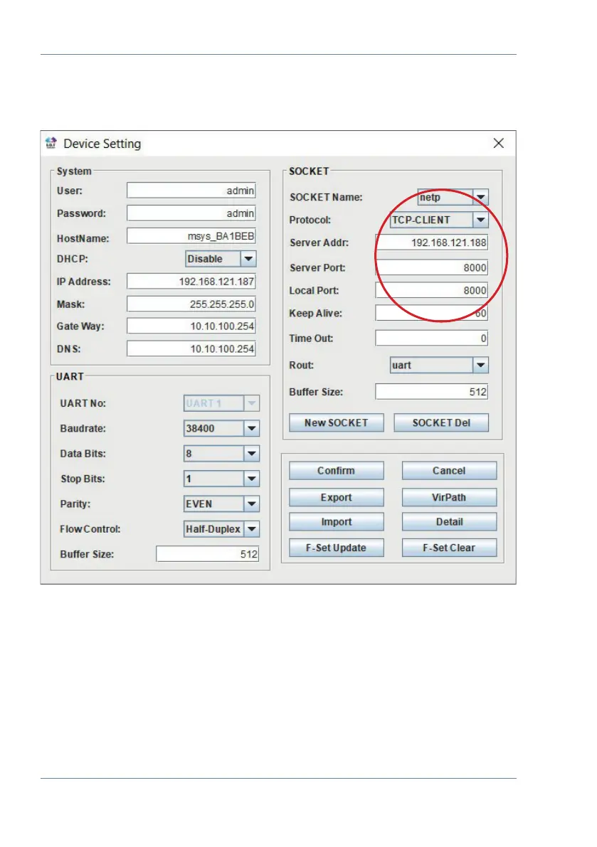 KBR multisys D2-ESET/MSMT-4 - Box-To-Box Operation (Parameters of the Server)