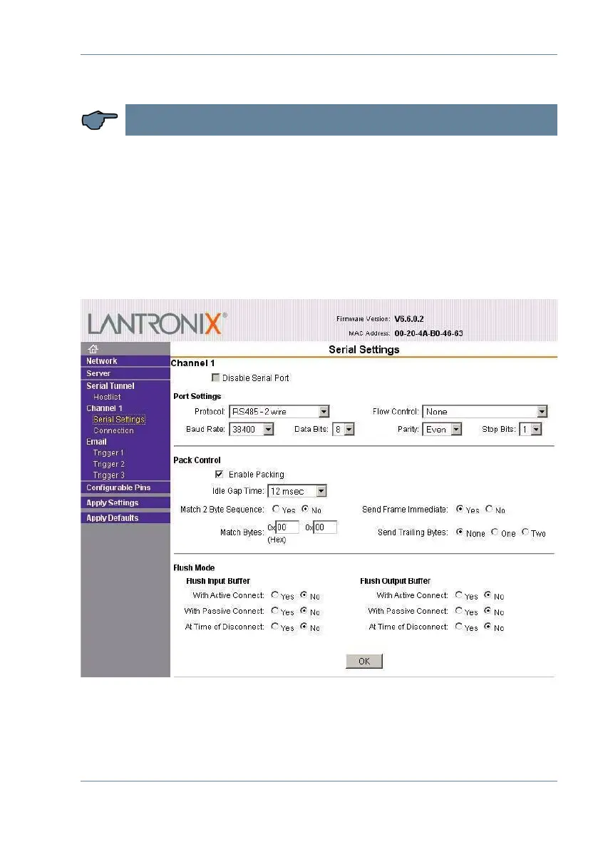 Channel 1 settings / Serial settings.