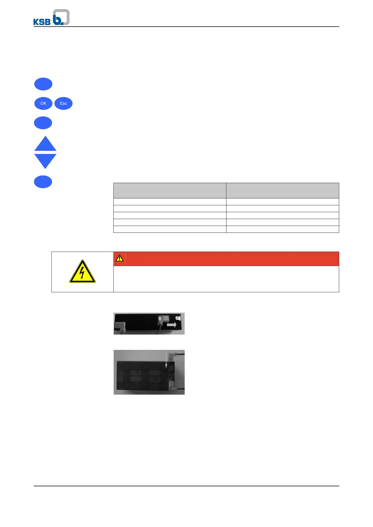 4. Use the arrow keys to select the inlet nozzle in acc. with the table below.